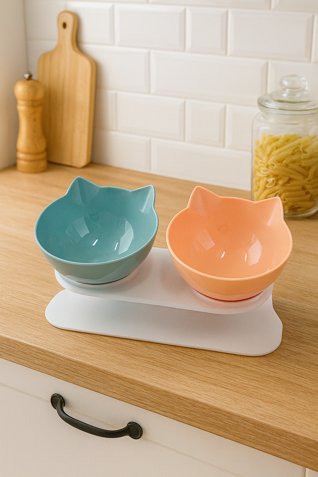 La Gamelle Chat Double – Eau Et Nourriture Équilibrée offre un espace repas pratique et ergonomique qui répond parfaitement aux besoins de votre félin. Ses deux bols inclinés en forme de tête de chat permettent de séparer eau et croquettes tout en assurant une position naturelle de la tête, pour une digestion plus confortable et moins de tension sur le cou.