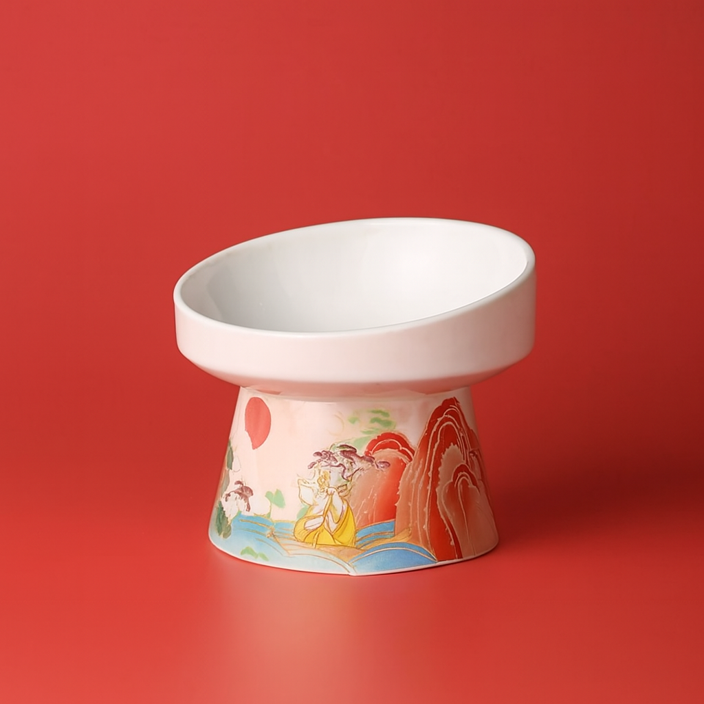 Fabriquée en céramique épaisse et stable, elle conserve la fraîcheur de l’eau et la propreté des aliments. Son pied décoré d’inspirations artistiques asiatiques en fait un véritable objet de décoration : chaque repas devient un moment raffiné pour votre compagnon.