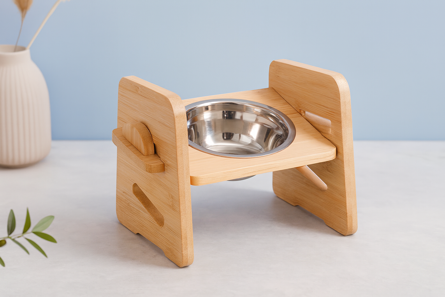 La Gamelle Surélevée Chien et Chat – Bol Réglable Incliné a été pensée pour s’adapter à la taille et aux besoins de votre compagnon. Son support en bois naturel réglable permet d’ajuster la hauteur et l’inclinaison des bols afin d’offrir une posture idéale, favorisant la digestion et réduisant la pression sur le cou et les articulations.